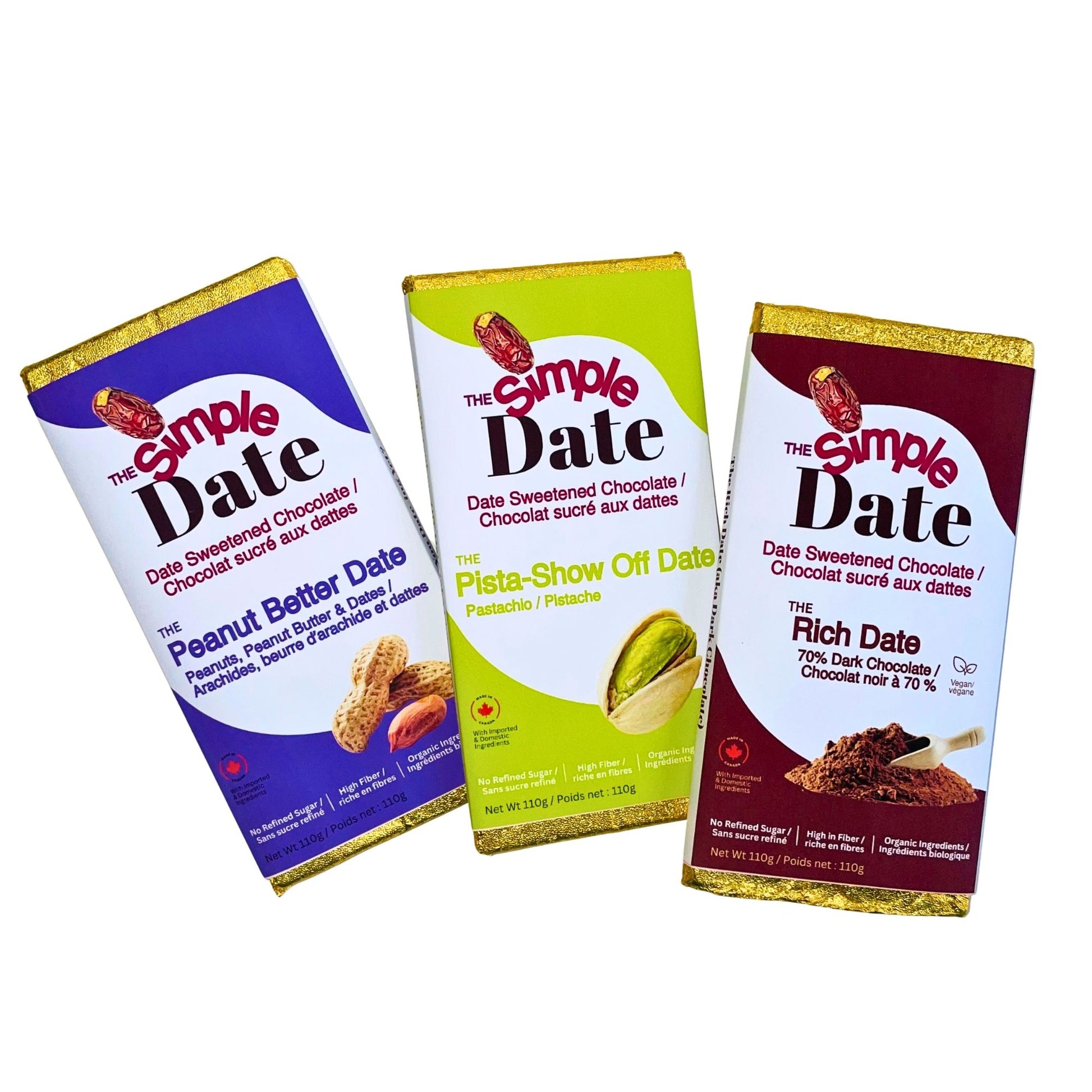 A curated trio of our bestselling date-sweetened chocolate bars: Peanut, Pistachio,+ Dark. Zero refined sugar. Pure indulgence. Perfect for gifting or taste-testing your favorites.